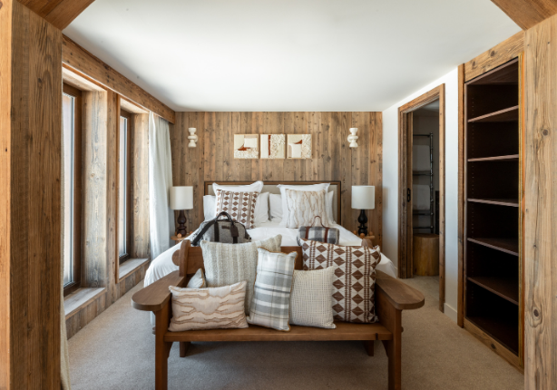 Avec ses volumes généreux, la Chambre Refuge Famille est pensée pour les séjours en tribu. Sa configuration combine confort et praticité, permettant à chacun de trouver sa place après une journée de ski. La vue sur les sommets environnants rappelle à chaque instant la beauté de la montagne environnante. Possibilité de chambres communicantes pour accueillir les grandes familles ou les vacances entre amis.
